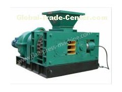 Carbon briquette machine host is powered by an electromagnetic speed regulating motor through a belt pulley and a cylindrical gear reducer to drive shaft through pin coupling. Synchronous operation of active shaft and passive shaft through open gear. A hydraulic device is arranged at the rear of the passive bearing seat. The screw feeding device is driven by an electromagnetic speed regulating motor, and by a belt wheel, the worm wheel is rotated, and the material is forced into the feeding port. If the supply is too large, the electrical overload is feeding device, feeding quantity is too small not into a ball. So skilled operation technique is an important condition to ensure the normal operation of the pressure.